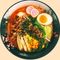 Chicken, Egg, SpringOnion, Corn, Naruto BeanSprout, Sesam, Seaweed and Vegetables